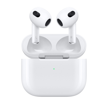 Experience immersive sound with these genuine Apple AirPods 3rd generation, designed with an ergonomic fit and adaptive EQ for superior audio. Featuring spatial audio with dynamic head tracking, sweat and water resistance, and up to 30 hours of total listening with the MagSafe charging case, these AirPods deliver comfort, performance, and seamless connection across all your Apple devices.