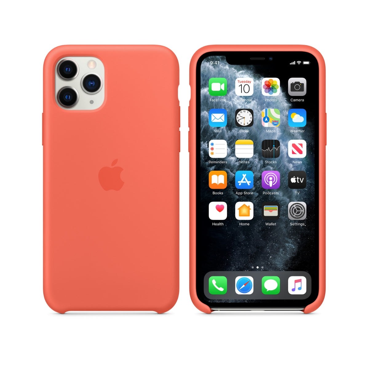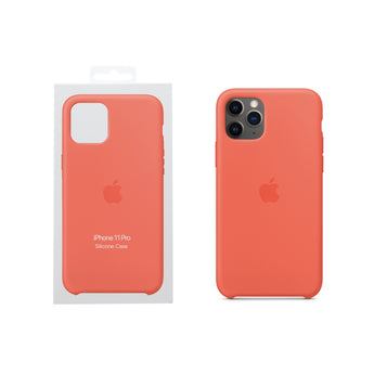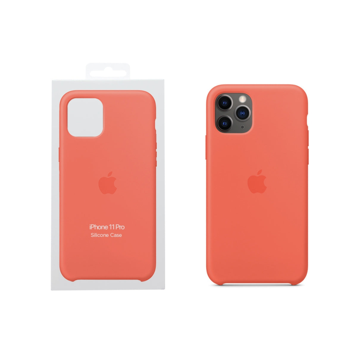 Genuine Apple soft and durable silicone case in Clementine colour, specifically designed for the iPhone 11 Pro. Equipped with MagSafe technology, it allows efficient and secure wireless charging. Its perfect fit and sleek design protect your device from bumps and drops while maintaining a slim and comfortable feel.