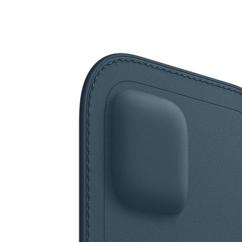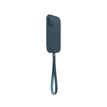 Genuine Apple soft and durable leather sleeve in Baltic Blue colour, specifically designed for the iPhone 12 mini. Equipped with MagSafe technology, it allows efficient and secure wireless charging. Its perfect fit and sleek design protect your device from bumps and drops while maintaining a slim and comfortable feel.