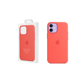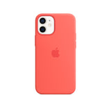 Genuine Apple soft and durable silicone case in Pink Citrus colour, specifically designed for the iPhone 12 mini. Equipped with MagSafe technology, it allows efficient and secure wireless charging. Its perfect fit and sleek design protect your device from bumps and drops while maintaining a slim and comfortable feel.