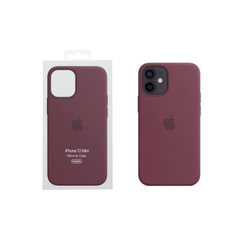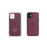 Genuine Apple soft and durable silicone case in Plum colour, specifically designed for the iPhone 12 mini. Equipped with MagSafe technology, it allows efficient and secure wireless charging. Its perfect fit and sleek design protect your device from bumps and drops while maintaining a slim and comfortable feel.