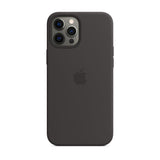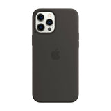 Genuine Apple soft and durable silicone case in Black colour, specifically designed for the iPhone 12 Pro Max. Equipped with MagSafe technology, it allows efficient and secure wireless charging. Its perfect fit and sleek design protect your device from bumps and drops while maintaining a slim and comfortable feel.